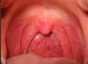 - Angina catarală eritematoasă(roșie) – este de etiologie virală cu debut brusc cu febră, frison, cefalee, mialgii, atralgii, oboseală, odinofagie și disfagie iar amigdalele sunt mărite în volum, tumefiate si congestionate.
